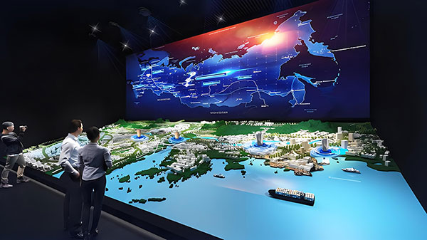 數字沙盤作為一種結合了傳統物理沙盤和現代數字技術的展示工具,以其直觀、互動性強、信息量大等特點,在展廳設計中得到了廣泛應用。它不僅能夠以三維立體的形式展示地理環境、建筑布局等信息,還可以通過觸摸屏、虛擬現實(VR)、增強現實(AR)等技術實現用戶與內容的實時互動。